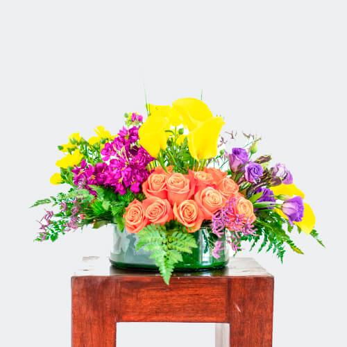 Descubre el encanto delicado de nuestra colección Elegance. Perfecto para añadir un toque vibrante y sofisticado a cualquier espacio, este arreglo es ideal para celebraciones especiales o simplemente para embellecer tu hogar.